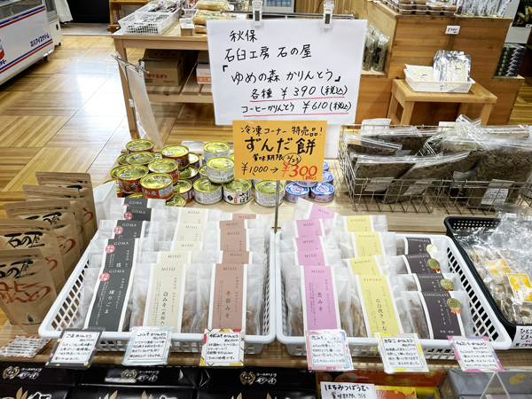 その際にお手伝いいただいた「手しごとAKIU 」の石の屋のかりんとうつくりをしている西村さんにお願いをして、道の駅津山もくもくランド内ときめきショップで秋保のかりんとうを販売することにしました。