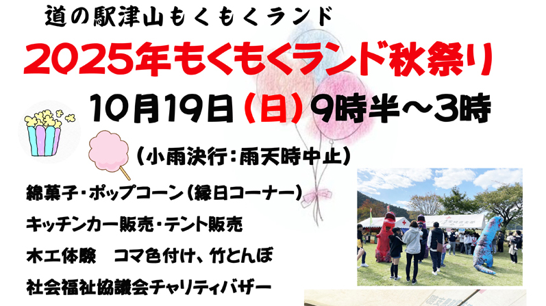 道の駅情報 , お知らせ 秋祭り 2025.09.21 道の駅情報 , お知らせ 2025年10月19日(日)道の駅津山もくもくランド秋祭りを開催します。毎年人気のもちまき大会も同日に予定しています。好評の子供限定のお菓子セットも配りますので、お楽しみに♪ Post Share Hatena Pocket RSS feedly Pin it 記事のタイトルとURLをコピーする りんご入荷 前の記事 新商品紹介 次の記事 関連記事 緑豊か 2025.05.21 来年の干支 2021.11.17 パーツ変更 2025.08.29 仙台和食 2024.10.12 新しいがいいね! 2022.01.26 イベント 2022.10.09 新商品 2024.08.13 産直情報 2023.11.17