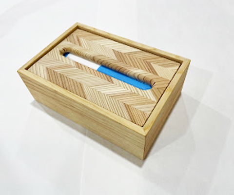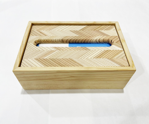 テッシュケースは何種類か入荷していますが、シンプルに柾目の側面に上のフタを矢羽にしたものがスッキリとしているように思います。最終的にこのデザインに統一しそうな工人の話です。が、、気ままな工人のことで時には違ったものを混ぜ込んで作るときがあるので、まだデザインは変化しそうな、、気がしますね(笑)