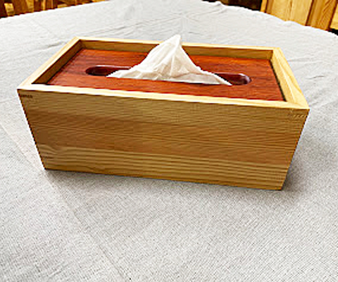 クラフトショップもくもくハウス新商品の入荷情報です。フタを置いて使用するタイプのテッシュケースが3種類入荷しました。赤い材料はカリンの木です。広葉樹なので重みがありしっかりしています。