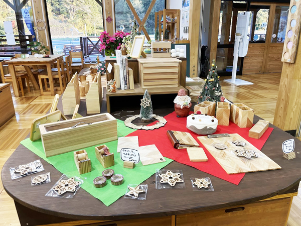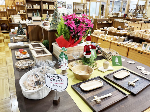 もくもくハウスでは木工品お買い求めのお客様にクリスマス用のラッピングをサービスしております。