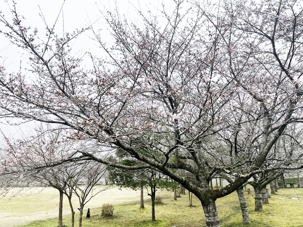 今朝、道の駅津山もくもくランドの桜は3分咲きになりました!